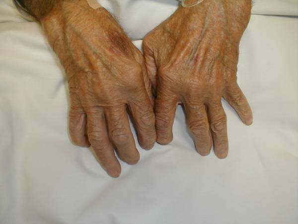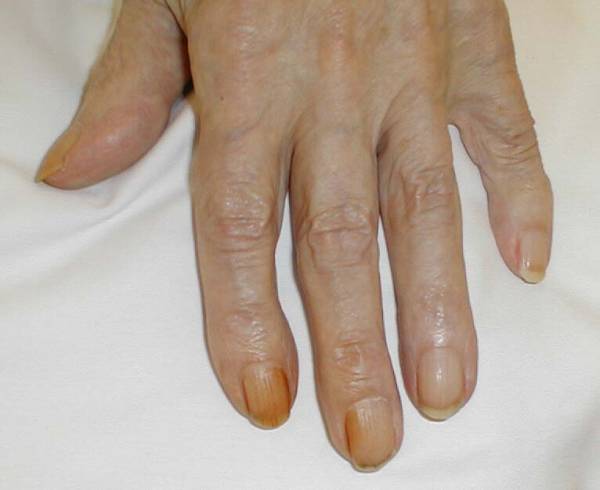 joints on every finger of both hands is consistent with a systemic inflammatory