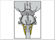 IntroductionExamination of the cranial nerves allows one to “view” the brainstem all the way from its rostral to caudal extent. The brainstem can be divided into three levels, the midbrain, the pons and the medulla. The cranial nerves for each of these are: 2 for the midbrain (CN 3 & 4), 4 for the pons (CN 5-8), and 4 for the medulla (CN 9-12). It is important to remember that cranial nerves never cross (except for one exception, the 4th CN) and clinical findings are always on the same side as the cranial nerve involved. Cranial nerve findings when combined with long tract findings (corticospinal and somatosensory) are powerful for localizing lesions in the brainstem. |