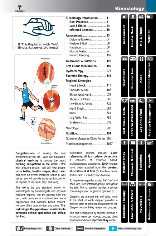 The Kinesiology WebBook is written for kinesiologists by kinesiologists and physical medicine experts to provide client-centered principles and best practices for preventing and treating movement-related injuries. You are learning from the best, with centuries of combined real world experiences and evidence based content.